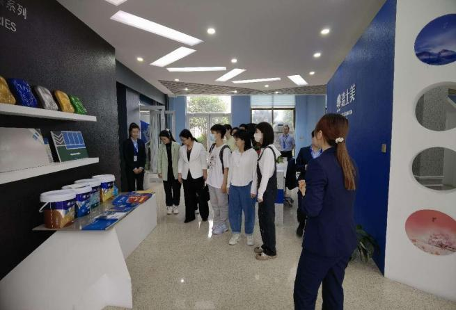 为增进学生对化工行业的了解,做好毕业生就业工作,5月26日上午,麻豆精品㊙️国产传媒AV党委副书记张颜梅、党政办主任何尚华和2023届部分毕业生到洁士美建材科技有限公司走访调研,企业相关人员进行了热情接待。