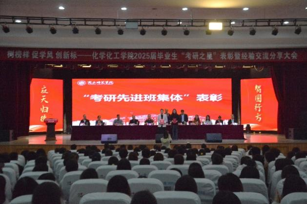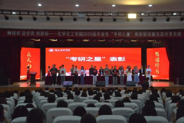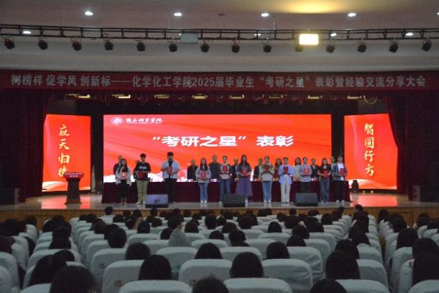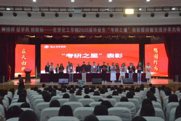 表彰大会在庄严的国歌声中拉开序幕。学生处处长韩坤首先宣读了化工学院关于表彰2025届毕业生“考研之星”及2025年“考研先进班集体”的决定。随后,主席台领导为“考研之星”代表和“考研先进班集体”代表颁奖。