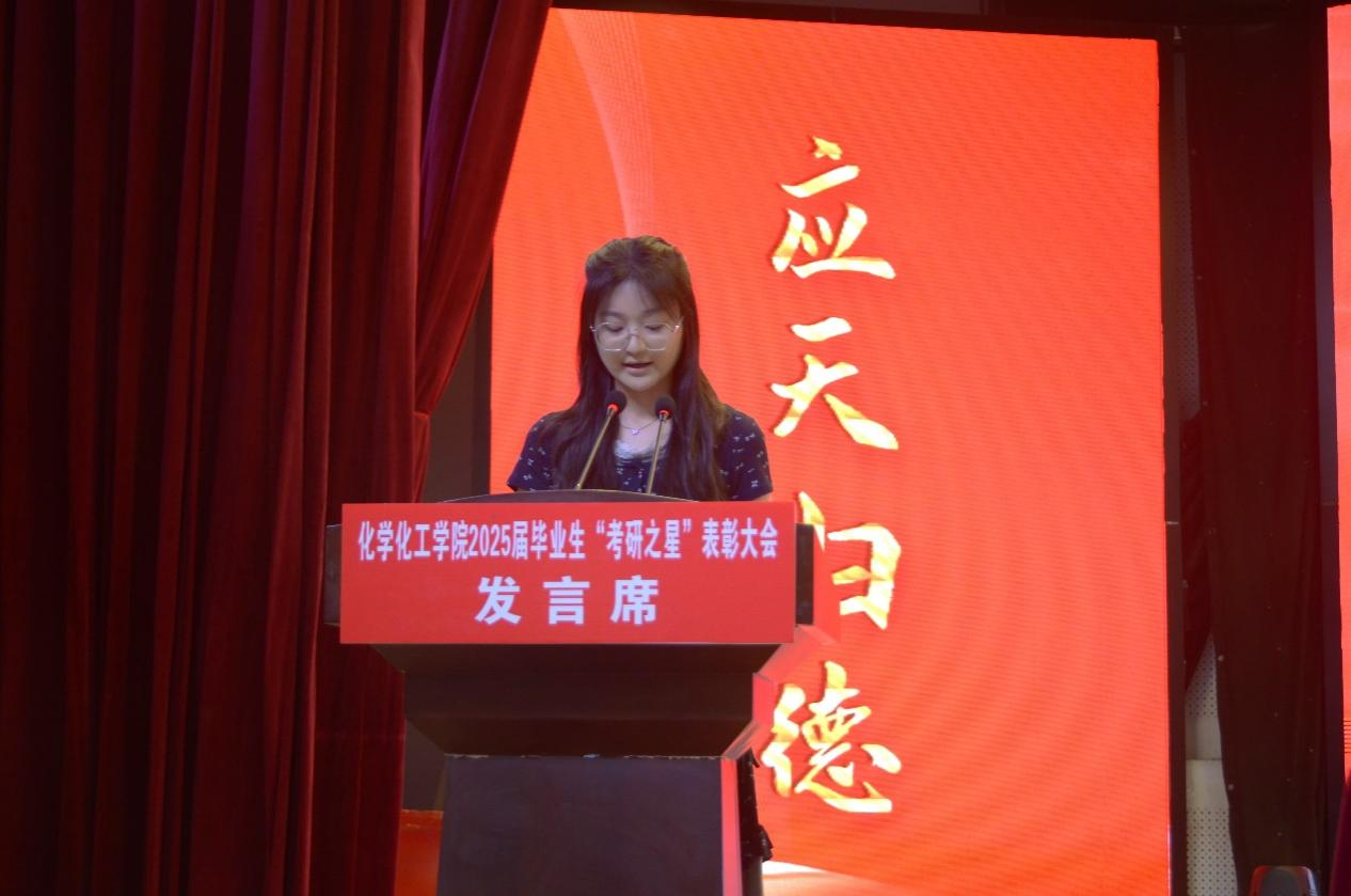 徐茂田教授代表老师、前辈、优秀校友等身份给大家分享了他的求学经历和一些诚恳建议,也对在场的同学们提出了殷切期望,鼓励大家在学术道路上不断探索进取。“考研之星”代表王昊、孙瑞雪、白海桐同学分享了如何确定目标院校,如何做好复习准备,如何做好调剂准备等内容。2022级新能源专业卢妍妍同学代表2026年拟报考研究生同学发言,并倡议所有备考同学要保持积极的学习态度和奋发向上的斗志,为实现自己的梦想而努力奋斗。