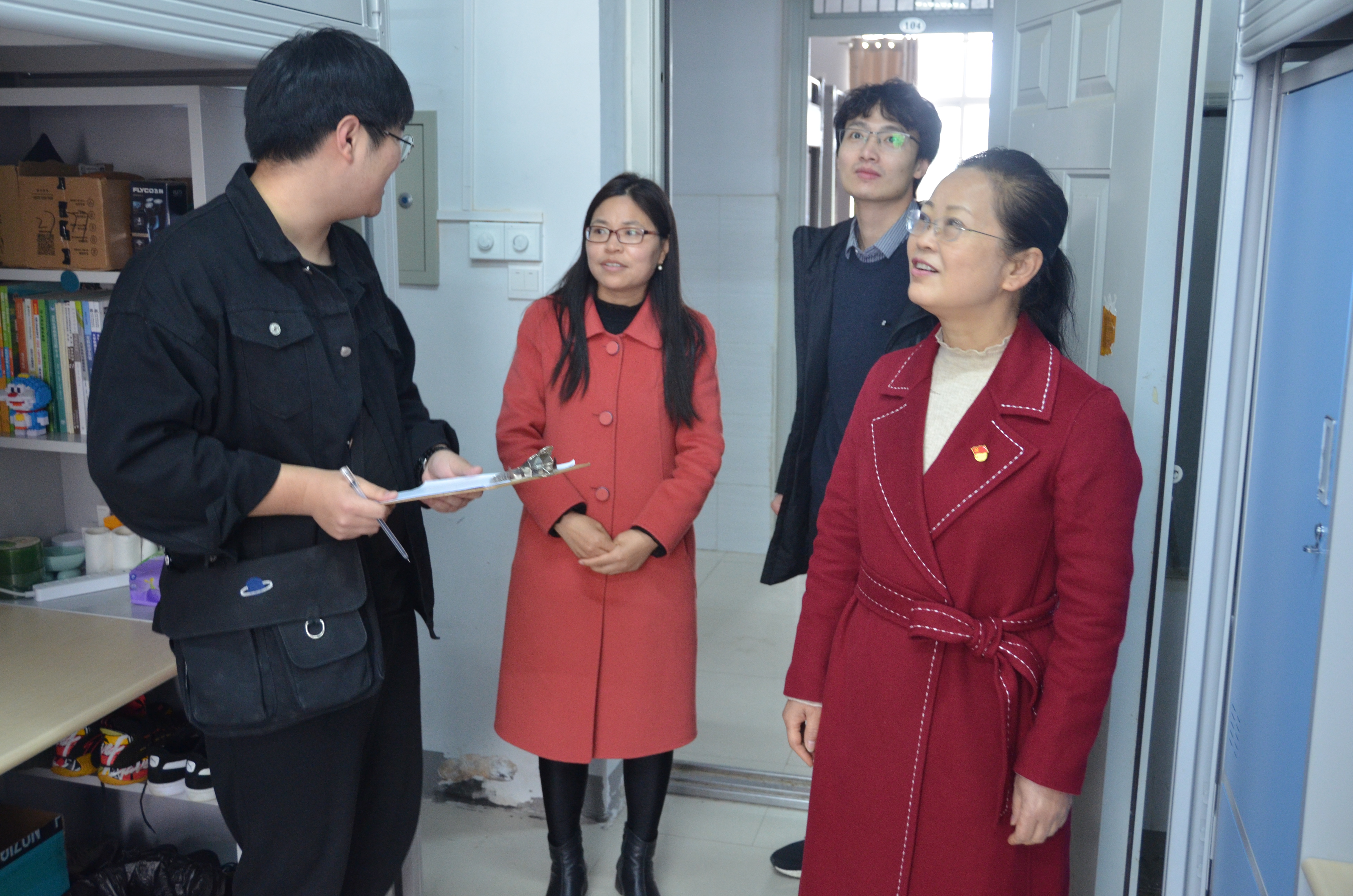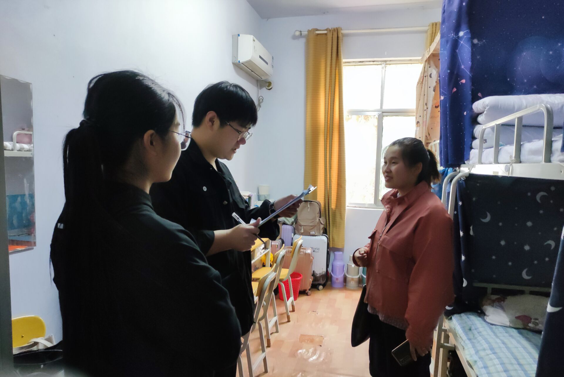 走访过程中,老师们详细询问学生日常生活情况,记录下学生遇到的难题,并对宿舍卫生、用电安全进行了检查。刘瑛提醒同学们一定要遵守宿舍管理规定,不使用违章电器,按时就寝,保持宿舍干净整洁,舍友之间相互理解包容、相互帮助,共同营造一个和谐、友爱、温馨的宿舍环境。刘瑛还提醒同学们,由于疫情防控形势需要,目前我校还处于封闭管理状态,希望同学们能继续坚持“非必要不外出”的原则,积极配合学校做好疫情防控工作,安排自己的好学习生活。此外刘瑛也对同学们的理解与配合表示感谢。