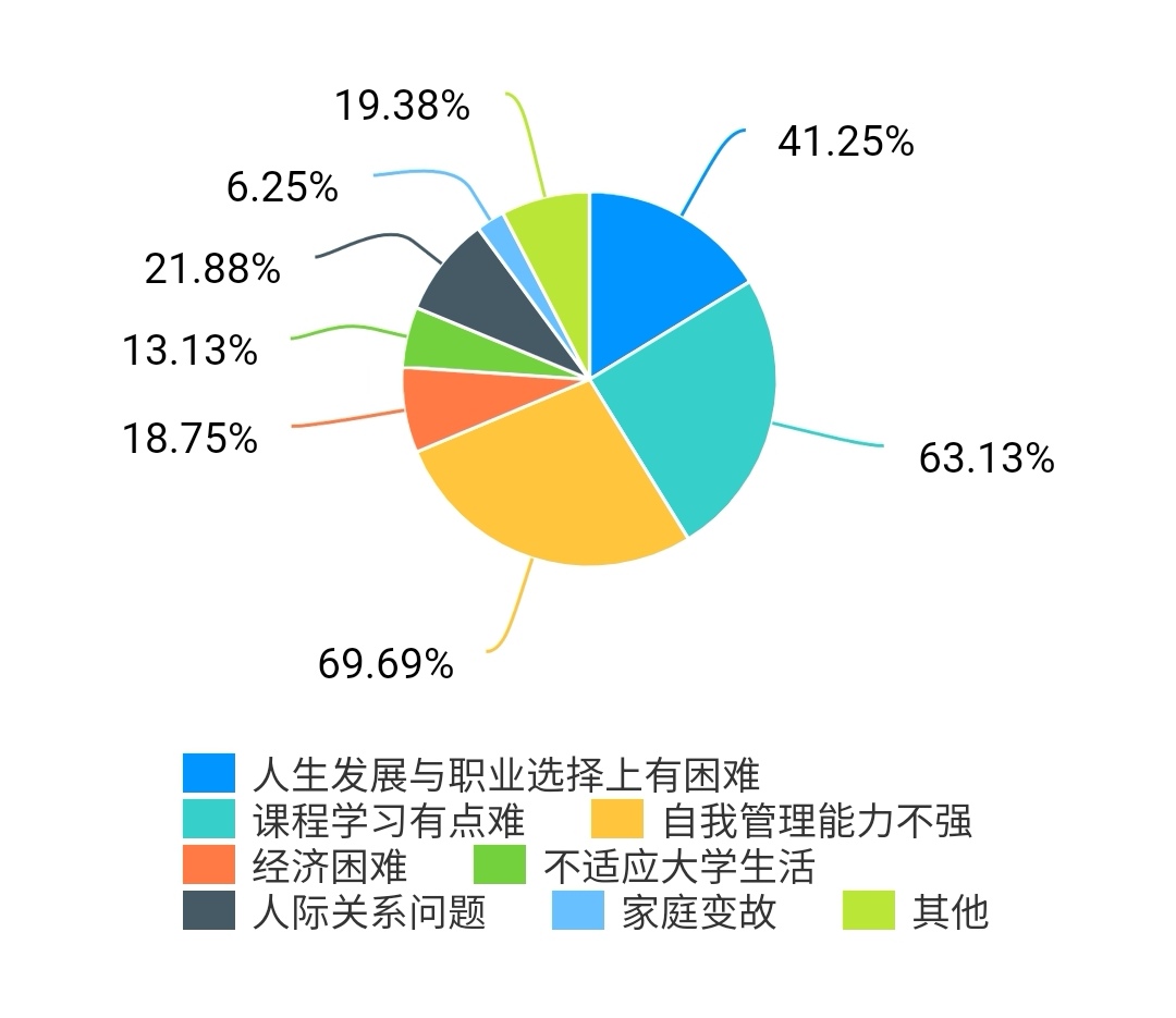 本次问卷调查采取随机抽样调查的方式,从麻豆精品㊙️国产传媒AV18、19、20级学生中抽取一部分为代表反映整体调查情况,面向现代大学生学业和生活方面的问题进行调查。调查显示,部分同学对自己以后的生活或学业会产生焦虑,当遇到压力或烦心事时向老师求助较少而更多的是选择自己缓解,且常会有自我管理能力不强、课程学习有点难、人生发展与职业选择上有困难等诸多烦扰。根据调查分析得知,将近半数大学生希望得到一对一心理咨询、网络心理咨询等心理健康服务方式。