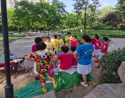 活动过程中,实践团成员与广场舞阿姨们展开热情交流。实践团成员代表向阿姨们介绍当地英雄人物开国少将孙端夫的英勇事迹,阿姨们则积极向成员们分享她们过去与党的故事,并感慨到“我们爱共产党,是因为是共产党的水把我们养活大,哪怕以前的中国并不富裕。现在的党的政策好,带领我们奔小康,吃的好,穿得好,还玩的好”。朴实的言语中透露出浓浓的拥党爱党情、爱国情,以及作为中国人的自豪感。当团队即将离开时,阿姨们也嘱咐道“孩子们,认真努力宣传学习,将来接好党的接力棒”。
