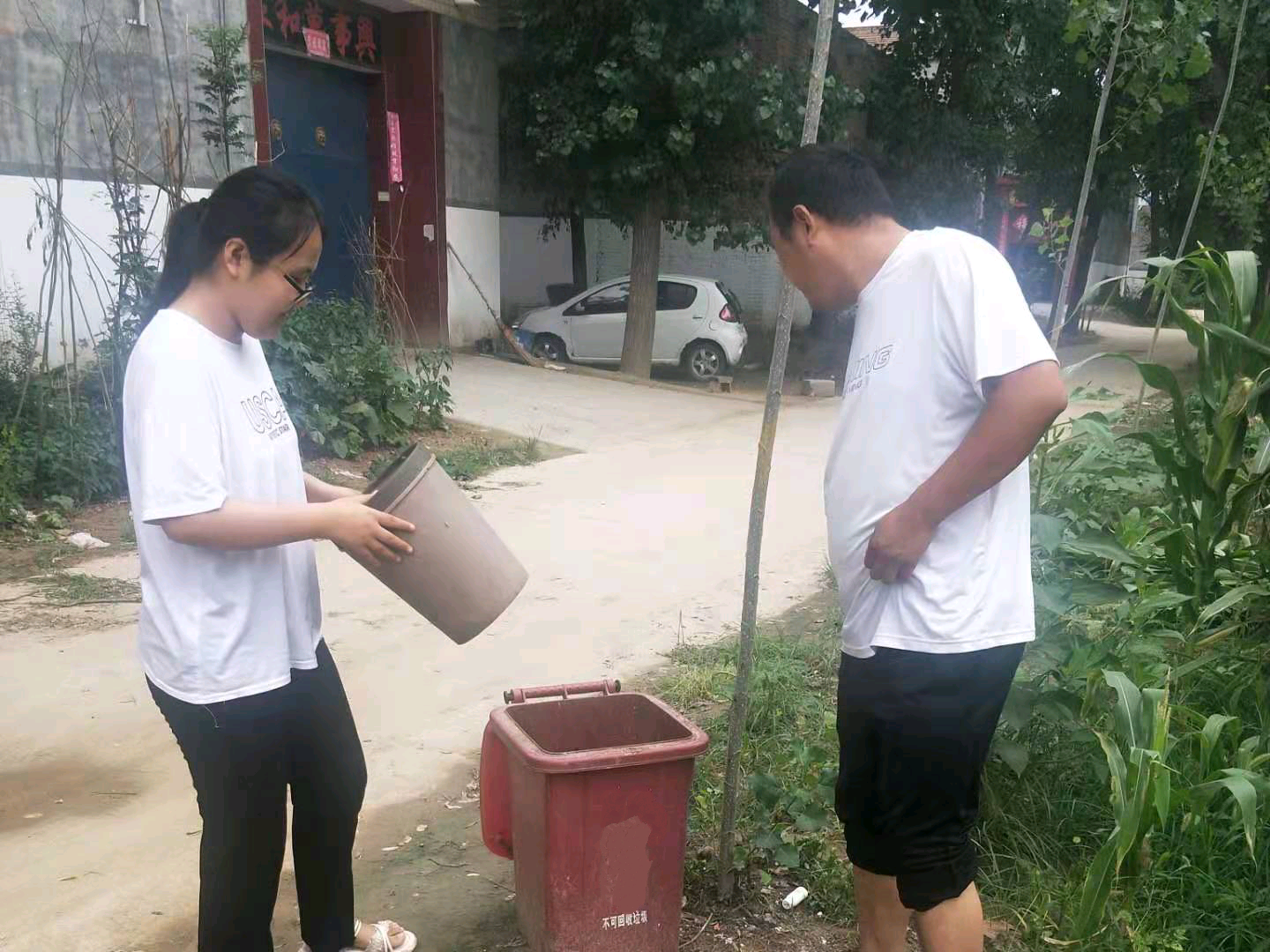 7月26日,团队成员付雯前往河南省一街道进行环境维护,帮助工作人员减轻负担。付雯对村中街道和路面进行清理并将垃圾分类回收。