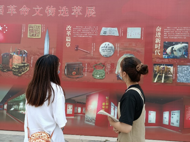 8月1日,团队成员前往河南省安阳市烈士陵园开展实践活动,该成员在烈士纪念碑下为英雄默哀,向英雄们致以最崇高的敬意,随后参观了安阳革命史纪念馆,学习安阳这片热土上闪耀着的革命精神。其次又来到红色百年—全国革命文物图片选粹展,参观并学习前辈们红色革命精神。该成员采访了一位老兵前辈,老人讲述了那段艰苦的岁月,并骄傲地展示了国家为他颁发的入党五十周年纪念章。