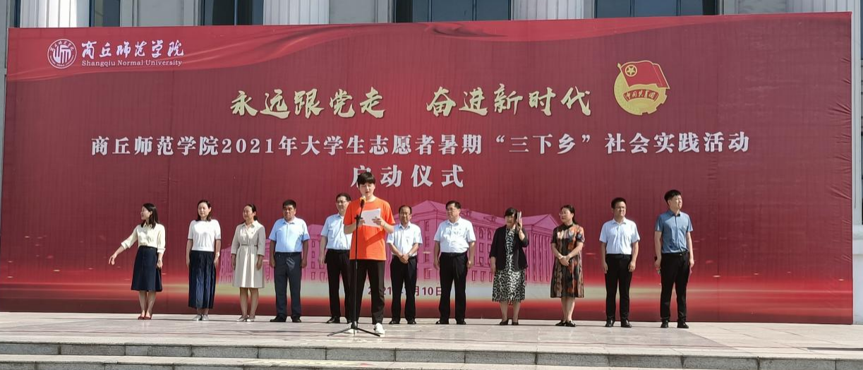 7月11日上午,30余名志愿者在郭家瑞老师的带领下,参加了校团委在梁园校区汉梁楼前南广场举行的商丘师范学院2021年暑期“三下乡”社会实践启动仪式。