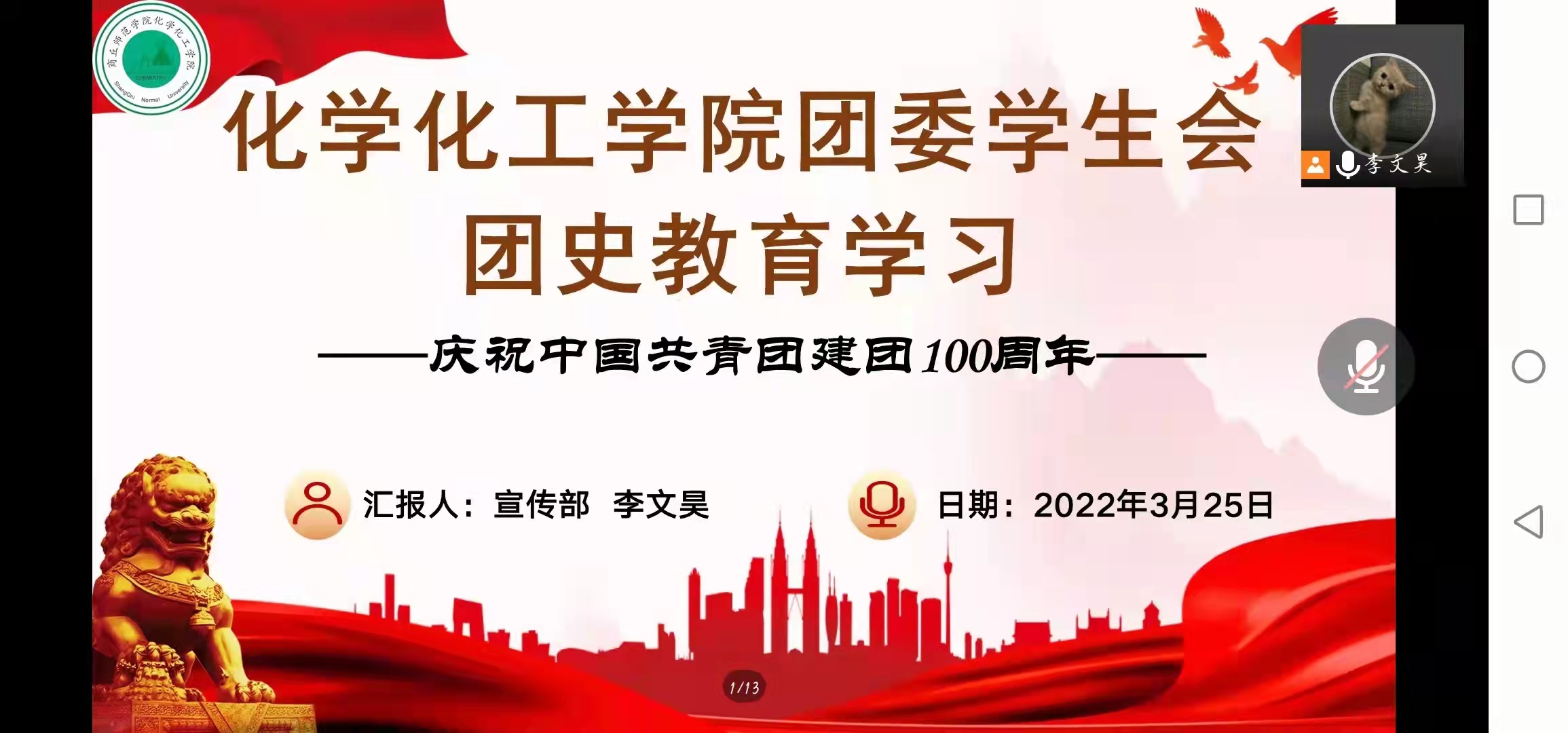 为深化团学干部对团史的认识,进一步强化对团组织的认识,3月25日,麻豆精品㊙️国产传媒AV团委学生会开展线上会议,进行百年团史学习教育。会议由院学生会宣传部负责人李文昊主持,院团委学生会全体成员参加。