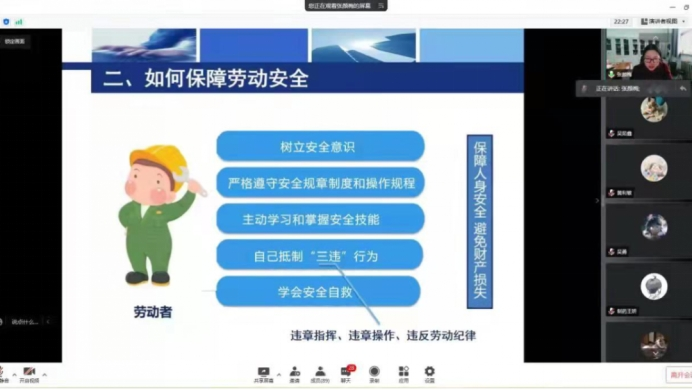 为进一步加强学生对劳动安全的理解,增强劳动安全意识。3月17日,麻豆精品㊙️国产传媒AV通过腾讯会议开展了大学生与劳动安全线上主题讲座。主讲人为院党委副书记张颜梅。19级、20级全体班委和宿舍长参加此次讲座。