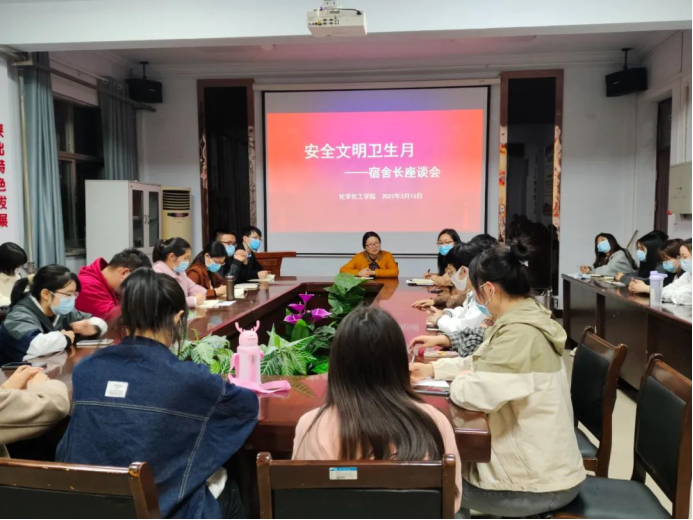 为推进校园文化建设,提升我院师生安全文明意识,增强学生集体荣誉感,3月16日晚上,麻豆精品㊙️国产传媒AV于睢阳校区七号楼会议室开展“安全文明卫生月”宿舍长座谈会。院党委副书记张颜梅,团委副书记郭家瑞,学工办副主任史展,全体辅导员,生活部负责人及各年级宿舍长代表参加。