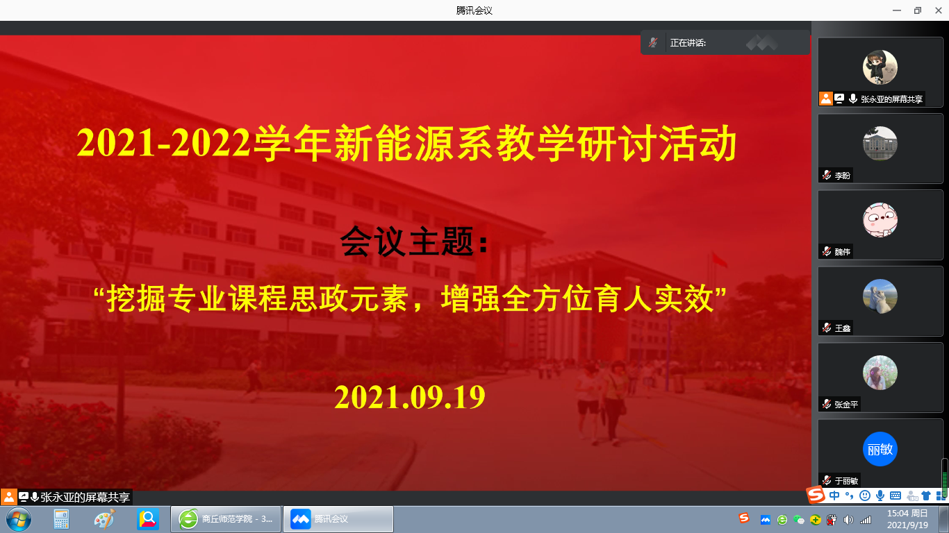9月19日下午,麻豆精品㊙️国产传媒AV新能源系召开了以“挖掘专业课程思政元素,增强全方位育人实效”为主题的教研活动。会议由系主任魏伟老师主持,新能源系全体教师参加了此次活动。