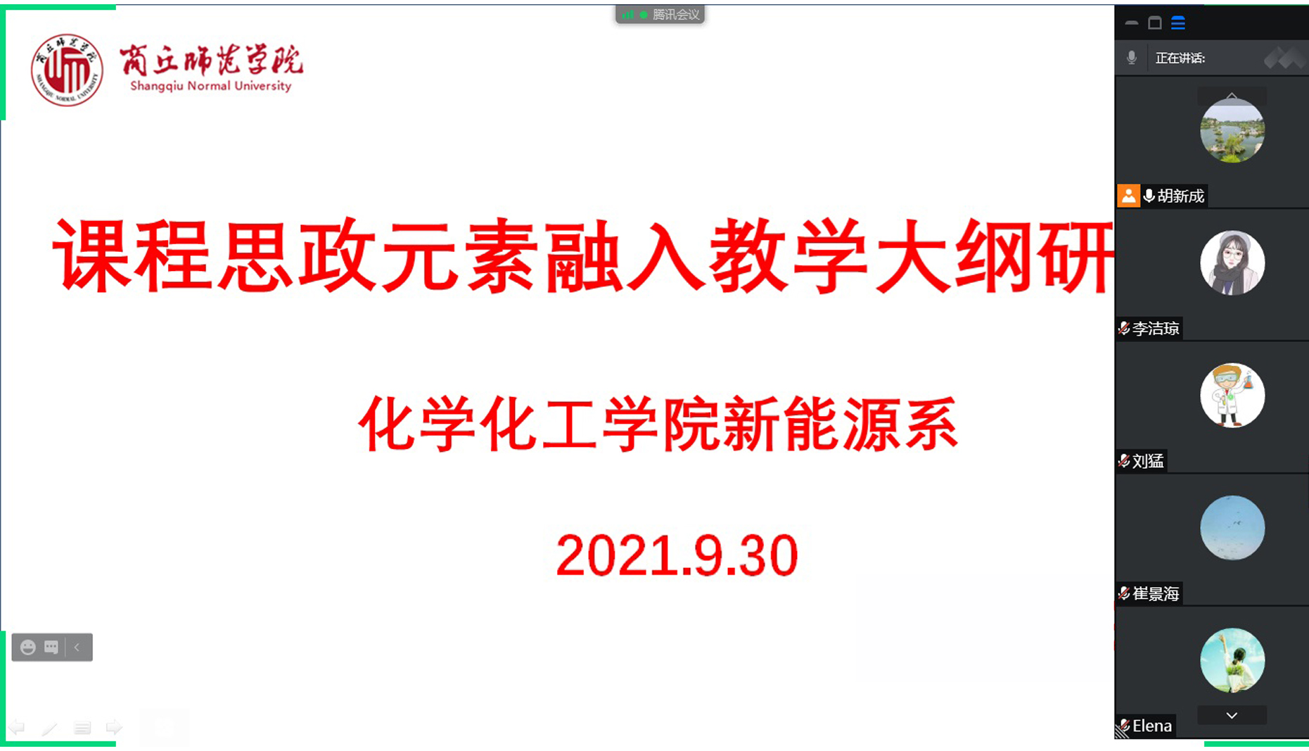 为深入贯彻落实习近平总书记关于教育的重要论述和全国教育大会精神,贯彻落实中共中央办公厅、国务院办公厅《关于深化新时代学校思想政治理论课改革创新的若干意见》,根据《商丘师范学院关于制定2020版课程教学大纲的指导意见》和学校相关部署,9月30日上午,麻豆精品㊙️国产传媒AV新能源系通过腾讯会议召开了课程思政元素融入教学大纲研讨会。会议由系主任魏伟主持,新能源科学与工程系全体教师参加了此次活动。