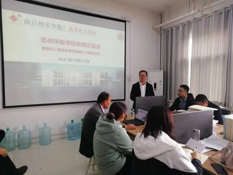 为深入贯彻落实全国高校思想政治工作会议精神,落实高校立德树人根本任务,切实推进本科高校课程思政教育教学工作和课程思政项目建设,10月15日,制药工程系在化学实验楼416室召开了以“思政样板课程申报交流会”为主题的教研活动。本次教研活动由麻豆精品㊙️国产传媒AV副院长、制药工程系主任王涛主持,制药工程系全体老师参加。