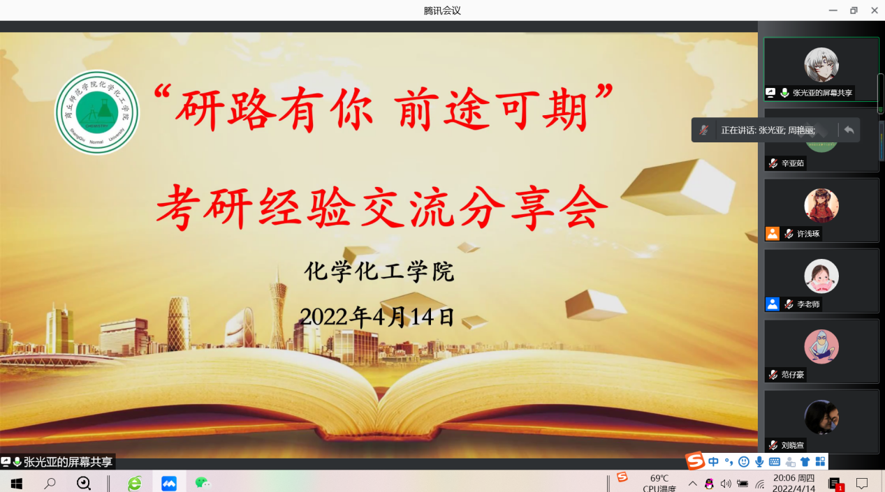 经验交流分享会由四位拟录取硕士研究生的同学依次发言,分别从考试科目、院校选择、学习方法和心理疏导等方面就考研过程中的经验与心得进行了分享。接着,四位同学就备考中所遇到的一些问题与学弟学妹们进行了详细交流,耐心解答,同时鼓励他们尽快制定自己的考研计划,做好学习规划,积极备考。最后周艳丽对2018级考取研究生的学生表示祝贺,并勉励2019级学生尽早准备、精准定位、瞄定目标、坚持到底。