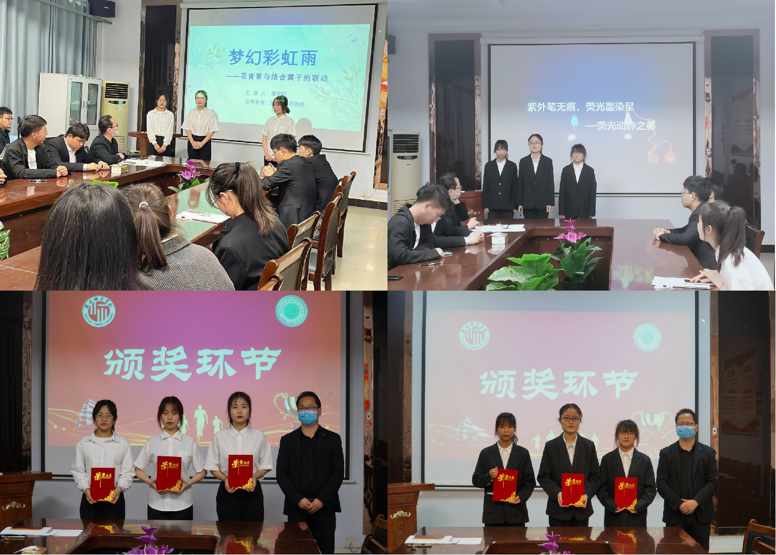 本次大赛以学生组队的形式参加,经过初赛的激烈角逐,共有六支队伍进入决赛。竞赛内容分为创新实验设计、已有实验创新设计、科普实验设计三大类,参赛小组通过前期预实验、撰写实验方案设计论文,以及现场汇报等环节来完成自己的参赛项目。现场展示过程中,参赛小组从安全、环保、创新性、趣味性等角度出发,从实验原理、实验内容、实验结果以及实验创新点等等方面进行汇报,评委老师通过查阅实验方案设计论文,听取现场汇报,以及现场提问三个环节进行评分。经过激烈的角逐,本次大赛评出一等奖3项,二等奖3项。