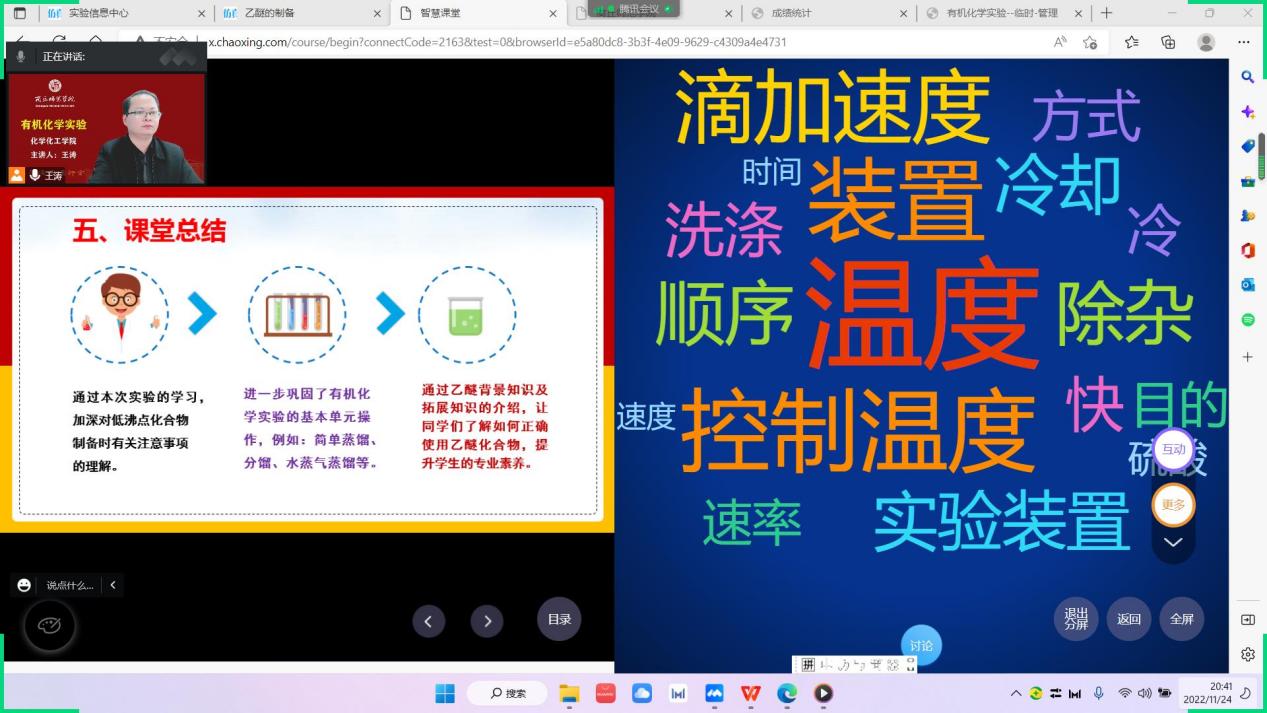 11月24日晚第9节,麻豆精品㊙️国产传媒AV王涛老师的《有机化学实验》课程教学范式改革公开课通过腾讯会议如期进行。院督导团成员臧运波,近两年新进青年教师以及课程组老师进行了线上课堂观摩。