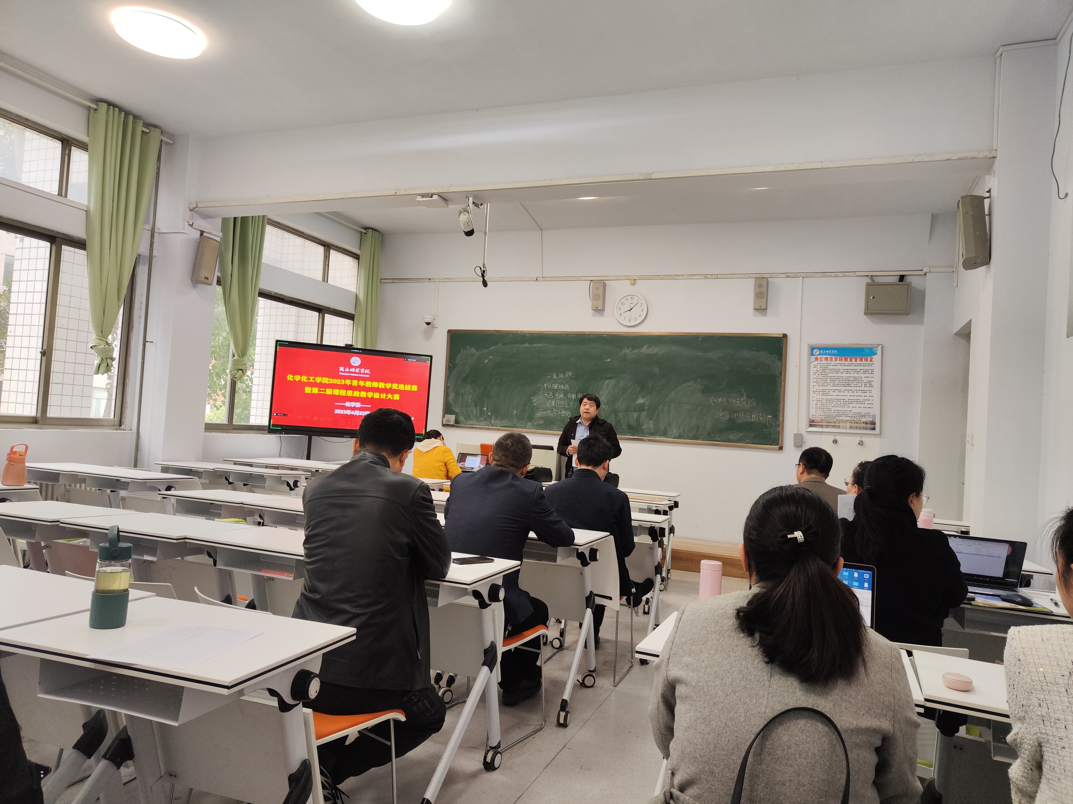 选拔赛分“说课”和“讲课”两部分。参赛教师结合自己的学科专业课程特色,深入挖掘各门课程蕴含的思政元素,大胆创新教学方法和教学手段,同台竞技展示各自教学风采,相互切磋提升教学技能,真正实现了“以赛代训、全员参与、整体提升”的效果。