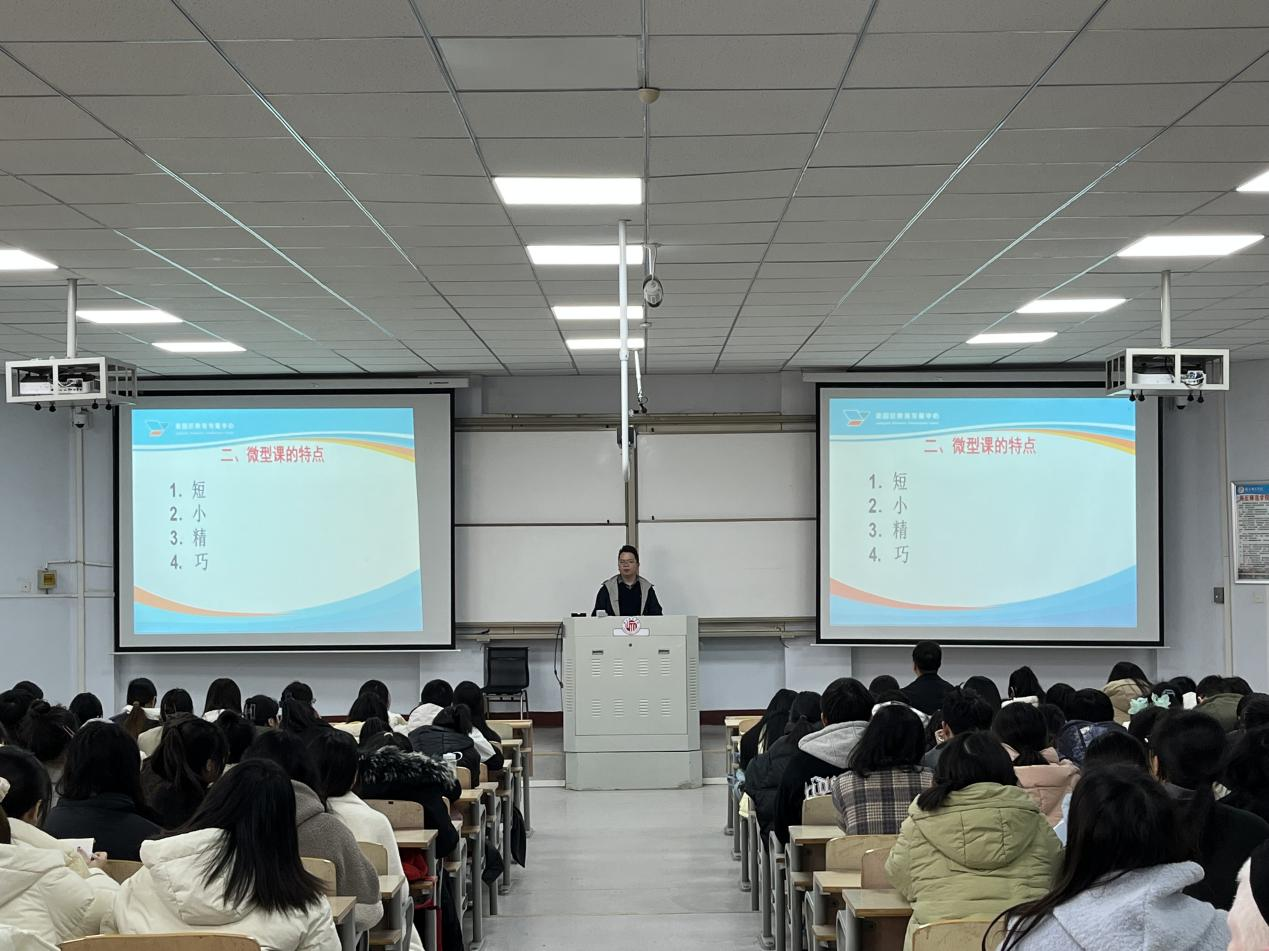 接着吕帅老师进行了《如何上好微型课》的专题讲座。吕老师从什么是微型课,微型课的特点,微型课与说课、微课的区别,如何讲好微型课,微型课要注意的细节等方面进行阐述。并通过播放往年优秀微型课教学案例视频,与同学们一起分析案例中的亮点和不足,加深学生对微型课讲课技巧的理解。