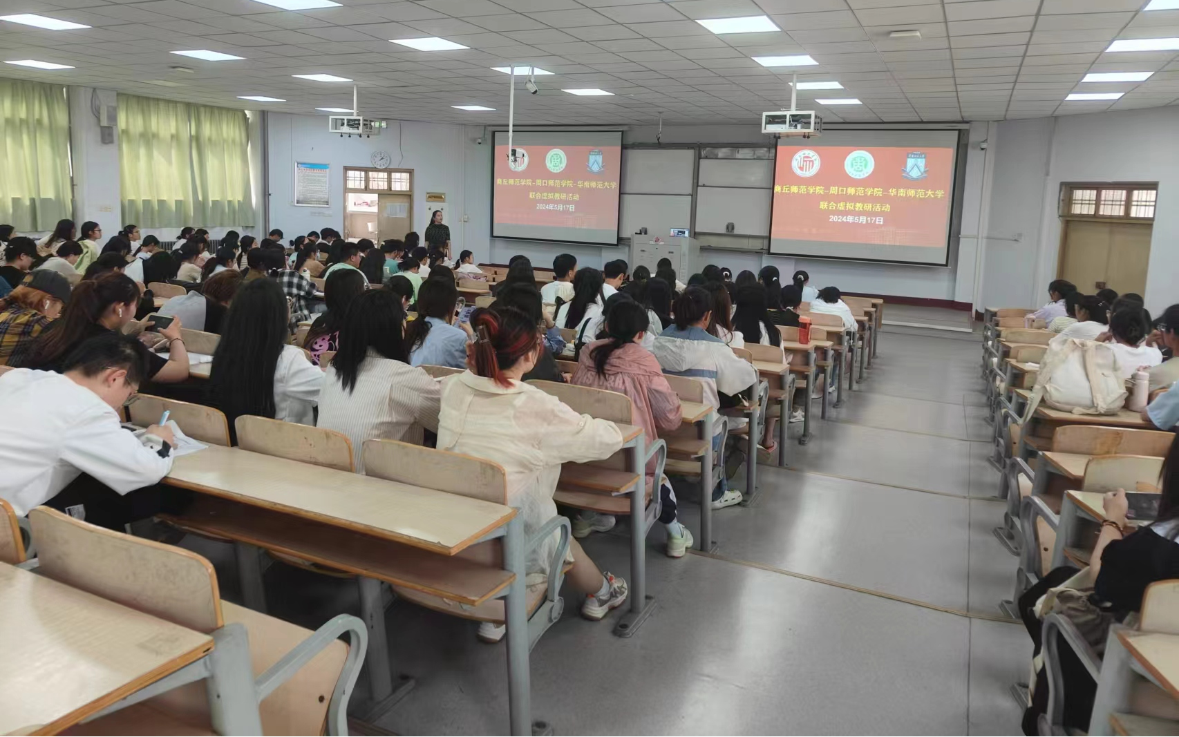 为探索推进新型虚拟教研活动,促进跨校合作、资源共享、协同创新,5月17日,商丘师范学院-周口师范学院-华南师范大学联合虚拟教研活动顺利召开。副院长王涛、化学系主任董辉、教学论授课教师及化学专业全体同学参加此次活动。