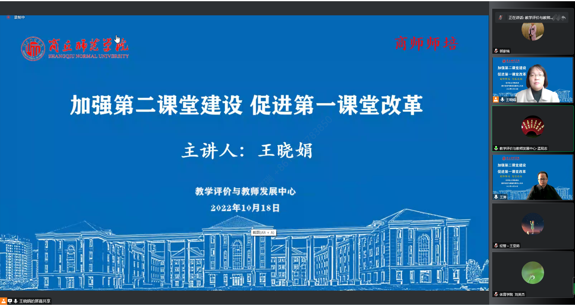 10月18日,由教学评价与教师发展中心主办、麻豆精品㊙️国产传媒AV承办的“笃信论坛”通过腾讯会议进行线上直播。我院王晓娟老师做了题为《开展第二课堂建设,促进第一课堂改革》的主题分享,论坛由副院长王涛主持。
