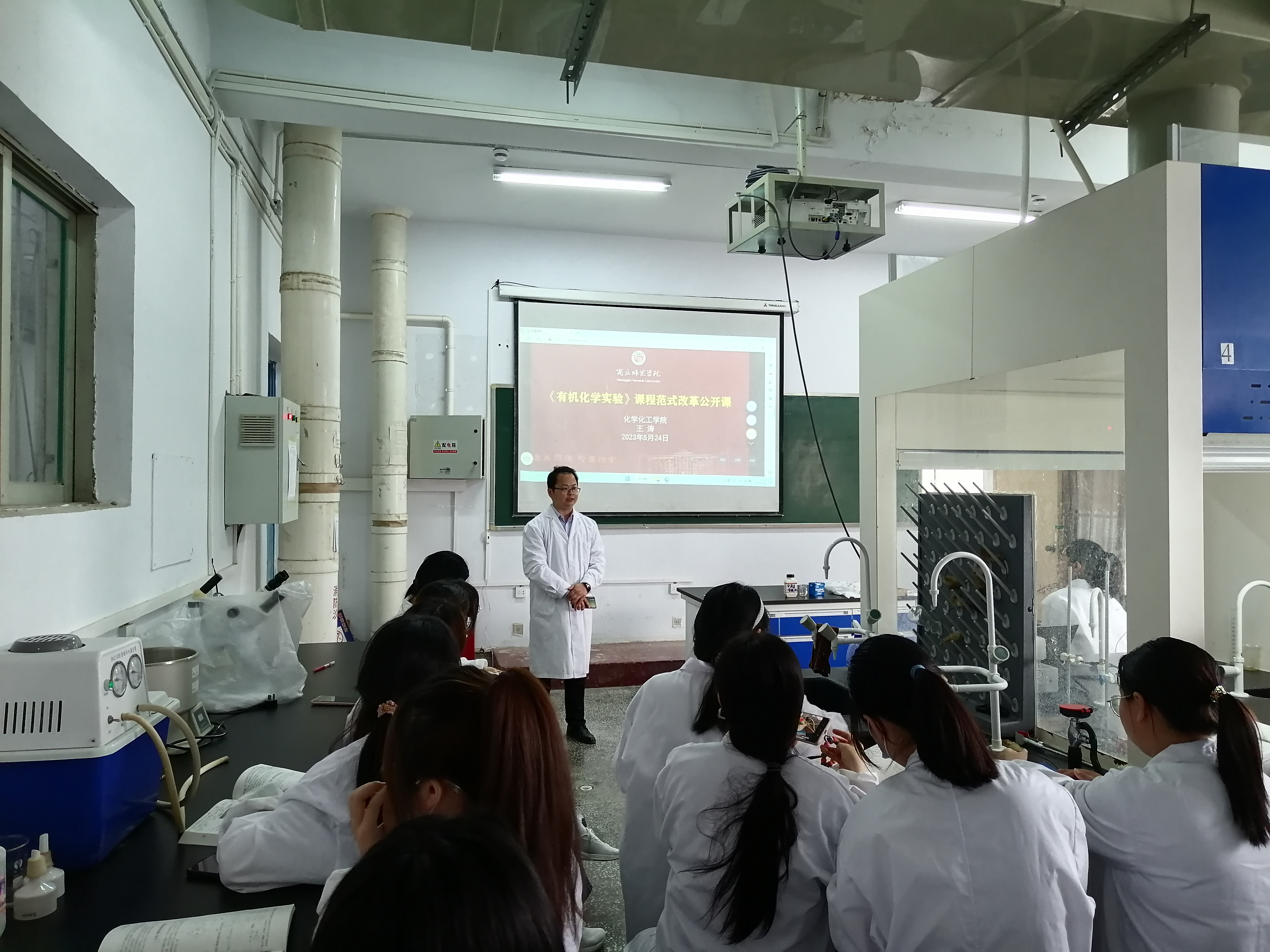 5月24日周三下午第5节课,麻豆精品㊙️国产传媒AV王涛老师负责的《有机化学实验》课程教学范式改革公开课在睢阳校区化学实验楼407实验室举行,制药工程系副主任张明亮、学院督导团成员臧运波以及近三年新入职青年教师观摩了此次公开课。