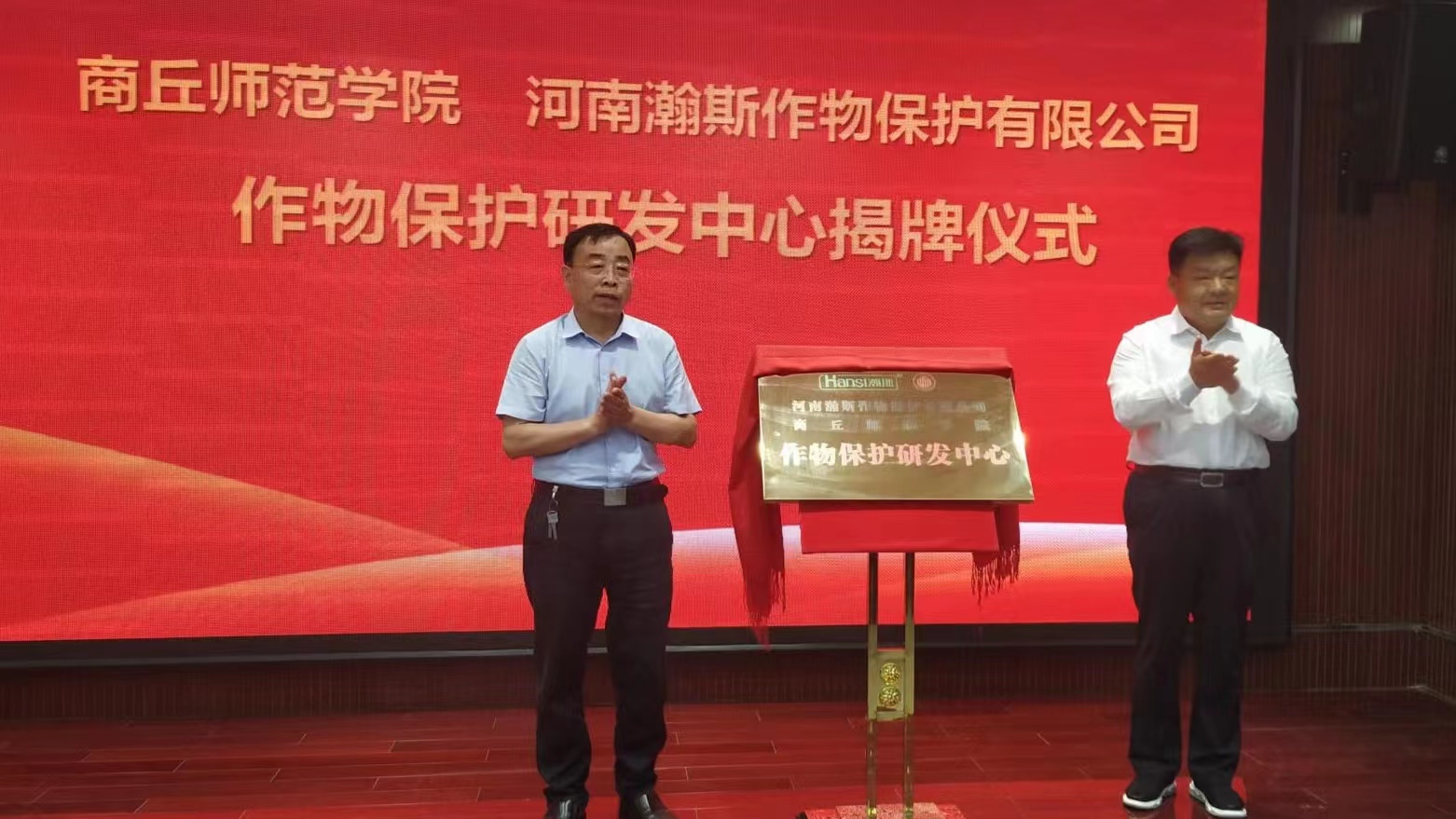图:徐茂田副校长和张锋副区长为河南瀚斯作物保护有限公司研发中心揭牌。