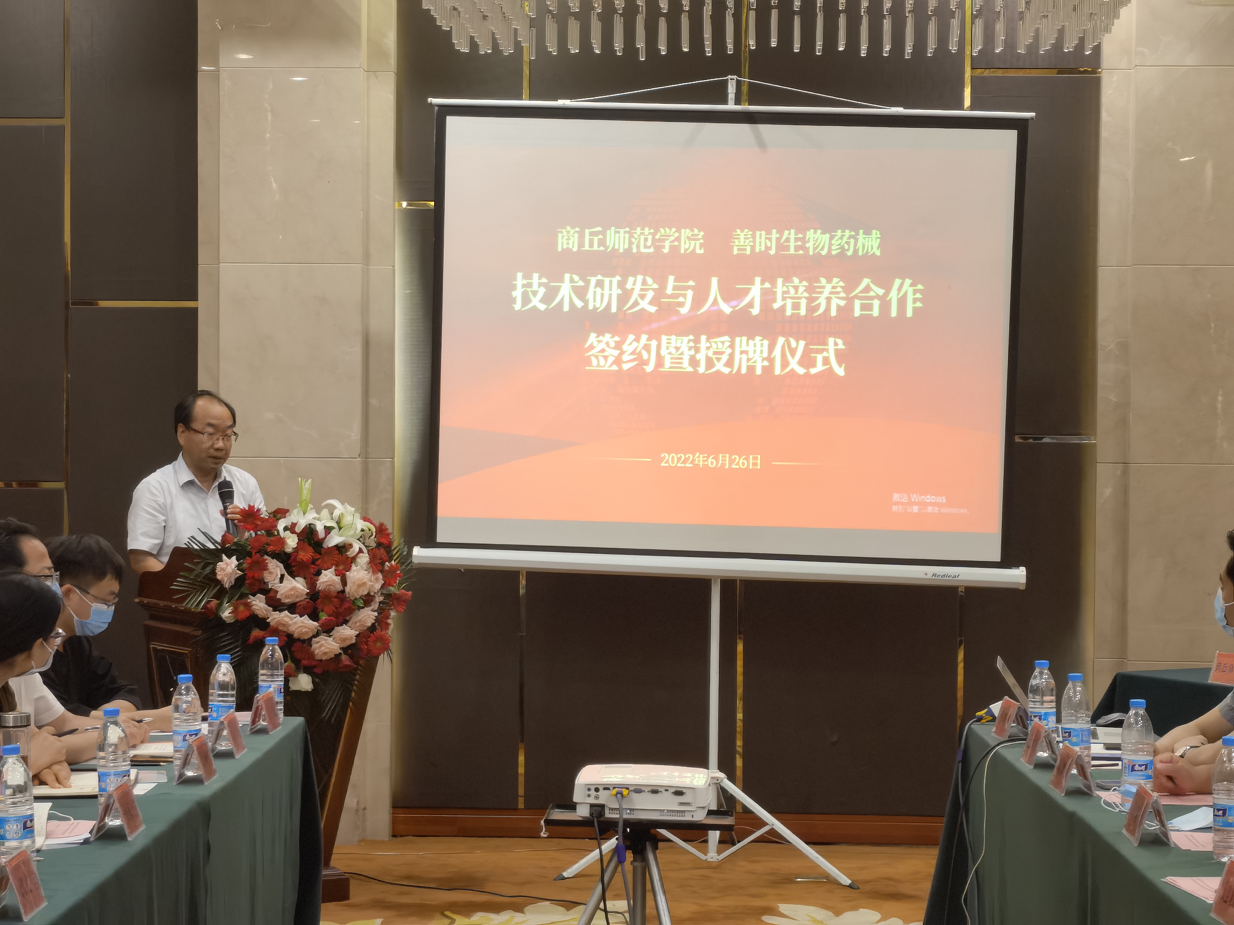 6月26日,我校与浙江善时生物药械(商丘)有限公司举行校企合作签约暨共建研发中心揭牌仪式。副校长郭文佳,校地合作与服务中心、麻豆精品㊙️国产传媒AV、信息技术学院负责人,商丘市睢阳区政协主席任广瑜,睢阳区政协副主席李彩霞,睢阳区产业集区管委会、睢阳区工业和信息化局主要同志,浙江善时生物药械(商丘)有限公司董事长边俊杰等出席签约仪式。
