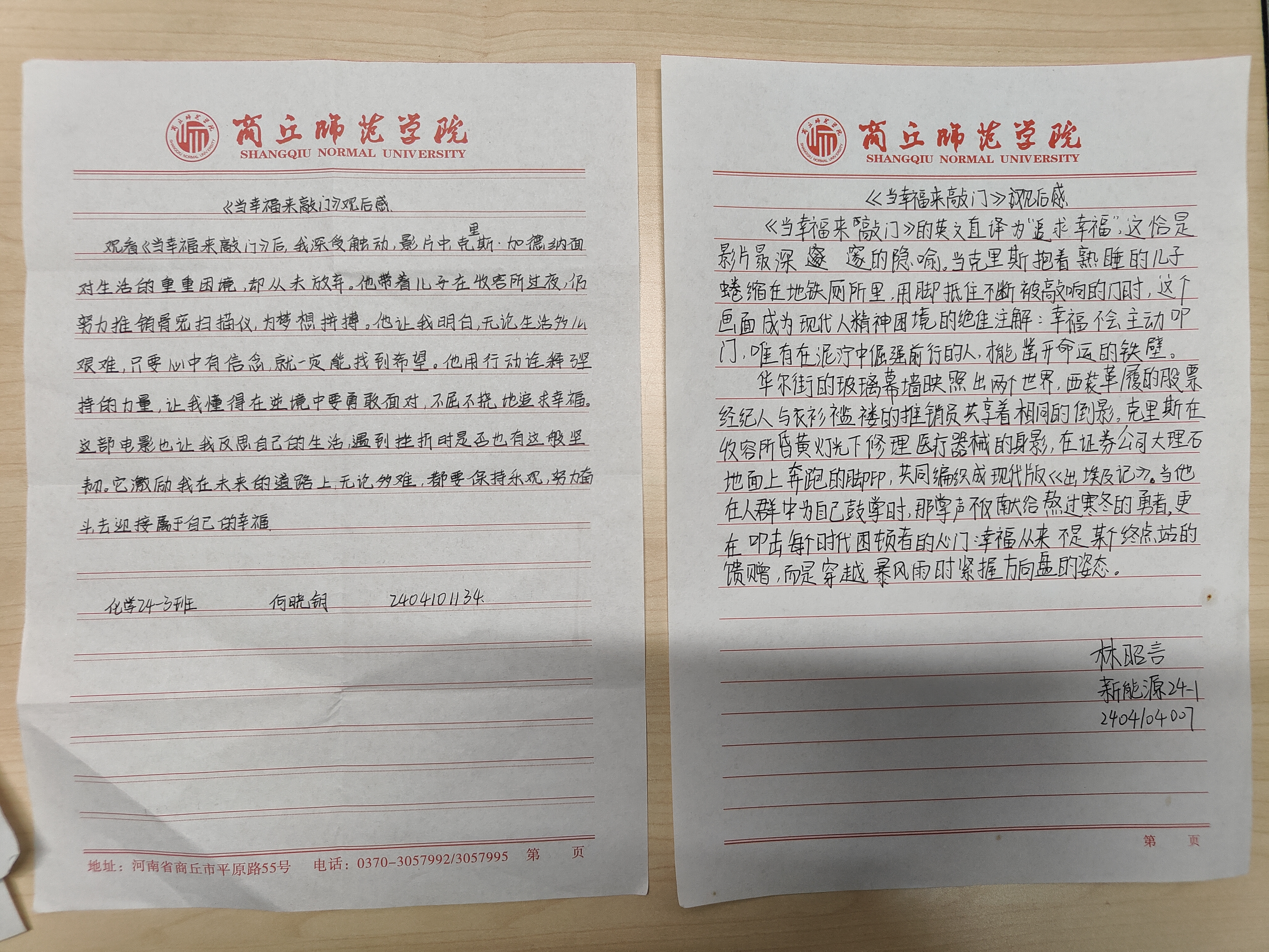 影片结束后,同学们纷纷写下观影感悟,字里行间饱含真情实感。此次观影活动成效显著,不仅让永不言弃的精神在同学们心中扎根,更助力大家培育坚韧乐观的心理品质,激励大家在人生的道路上勇敢前行,追逐阳光。